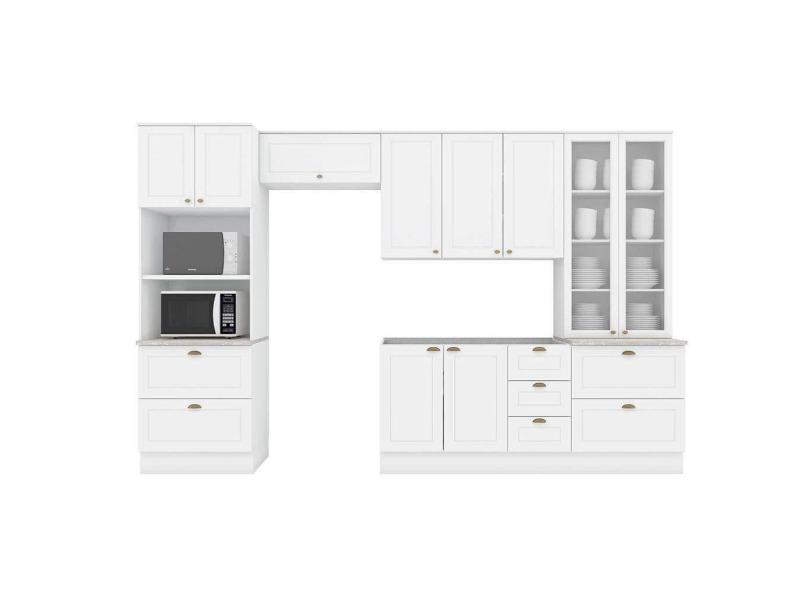 Cozinha Completa Americana 5 Peças (2Aéreos+1Balcão+2Paneleiros) C5P55 Branco - Henn