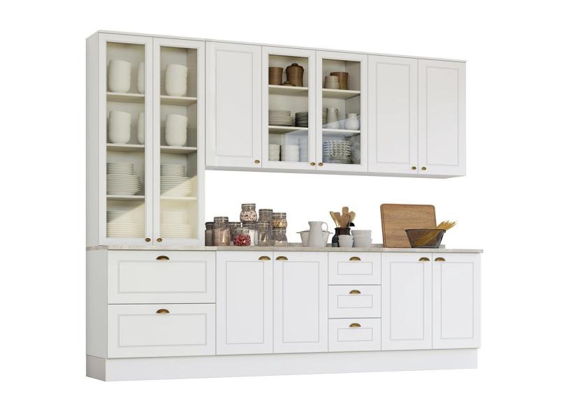 O menor preço encontrado no Brasil para Cozinha Completa Americana 5 Peças com Cristaleira - Móveis Henn Branco atualmente é R$ 3.538,90.