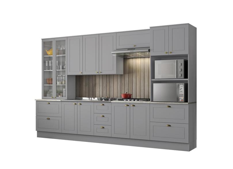 O menor preço encontrado no Brasil para Cozinha Completa Americana 6 Peças com Torre Quente 2 Fornos - Móveis Henn Cinza atualmente é R$ 3.987,35.