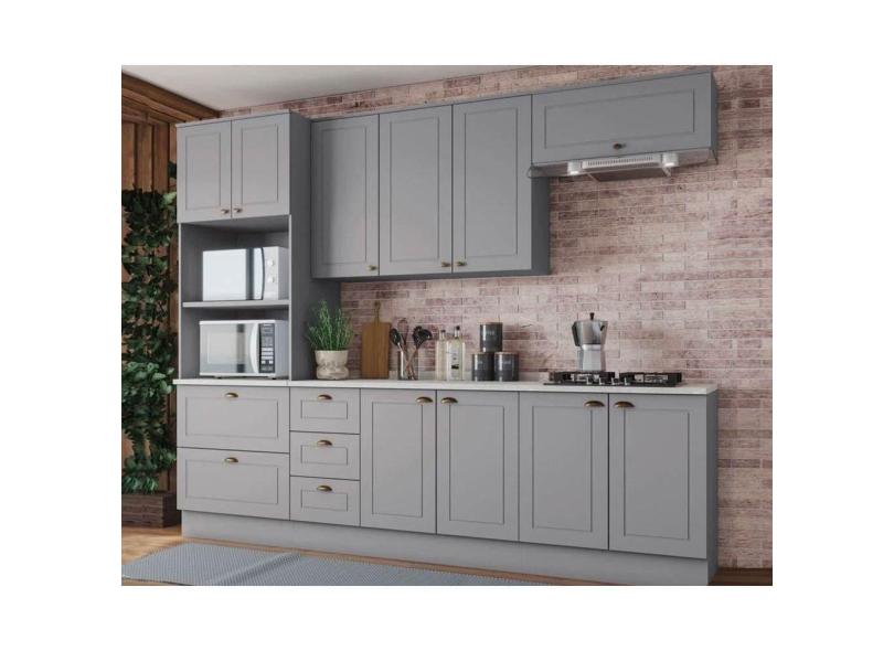 O menor preço encontrado no Brasil para Cozinha Completa Americana 7 Peças (2 Aéreos + 2 Balcões + 1 Paneleiro + 2 Complementos) CZ144 Cinza - Henn atualmente é R$ 3.115,96.