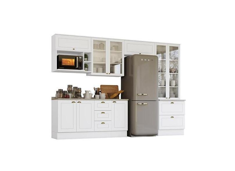 O menor preço encontrado no Brasil para Cozinha Completa Americana 7 Peças com Cristaleira Branco - Móveis Hen atualmente é R$ 3.526,65.
