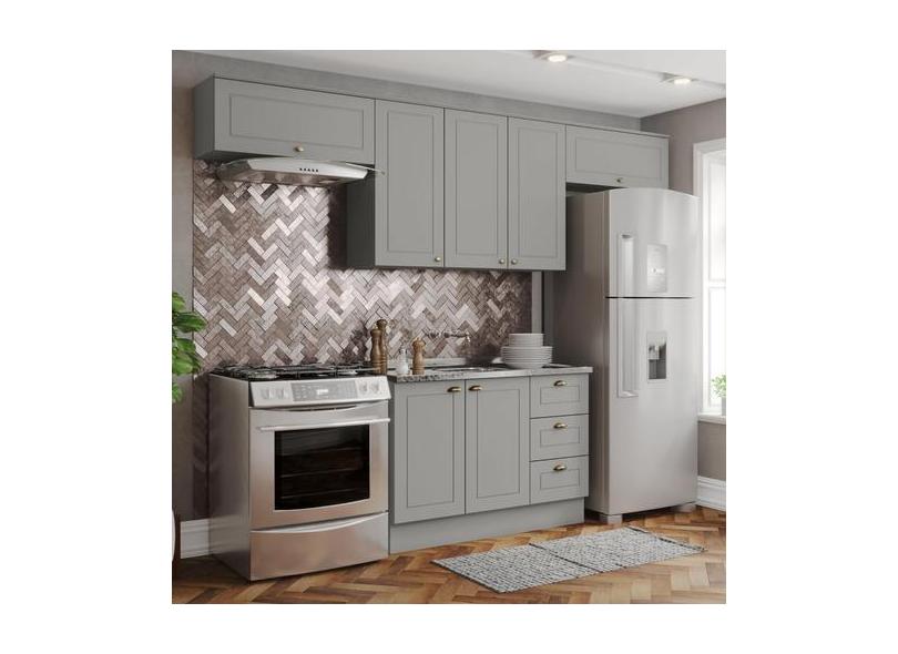 Cozinha Completa Americana 7 Portas 3 Gavetas 100% Mdf Cinza - Henn