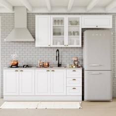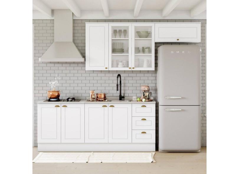 O menor preço encontrado no Brasil para Cozinha Completa Americana 8 Portas 3 Gavetas com Vidro 100% Mdf Branco - Henn atualmente é R$ 1.841,63.