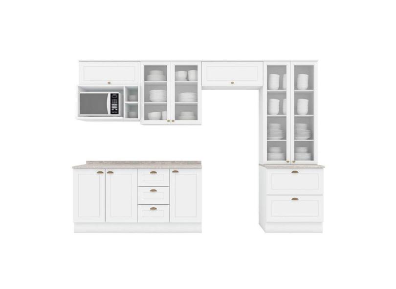 O menor preço encontrado no Brasil para Cozinha Completa Americana 9 Peças (4 Armários + 1 Paneleiro + 2 Balcões + 2 Complementos) C5P53 Branco - Henn atualmente é R$ 4.057,88.