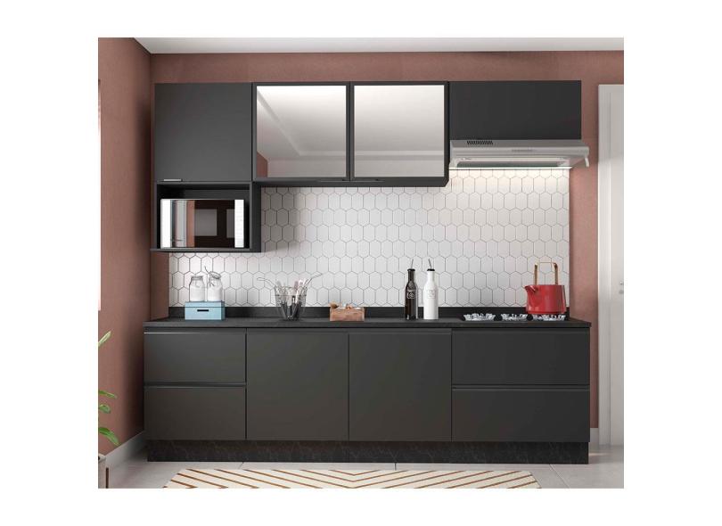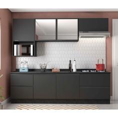 O menor preço encontrado no Brasil para Cozinha Completa Bartira Línea com 7 Portas, 4 Gavetas e 4 Prateleiras - 260cm de largura - Grafite atualmente é R$ 3.099,00.