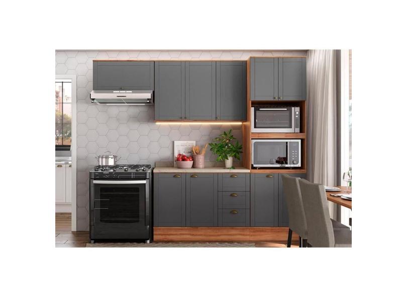 Cozinha Completa Bella 4 Peças (2Armários+1Balcão+1Paneleiro) C4P57 Nogal/Cinza - Carraro