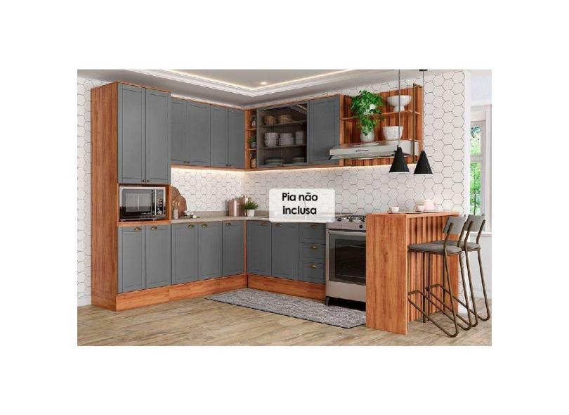 Cozinha Completa Bella 9 Peças (3Aéreos+3Balcões+1TorreQuente+1Ilha+1Complemento) C9P200 Nogal/Cinza - Carraro