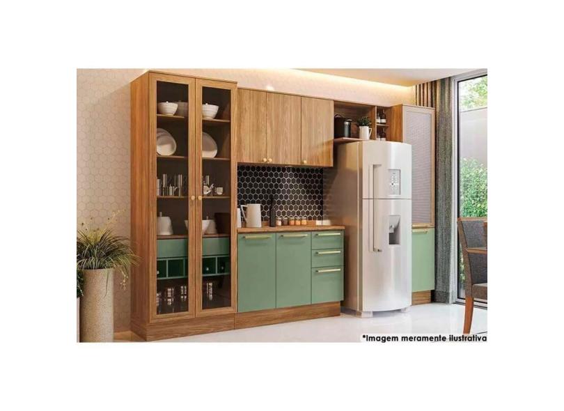 Cozinha Completa Botanic 6 Peças (2 Armários + 1 Balcão + 1 Cristaleira + 1 Paneleiro + 1 Complemento) M661 Nogueira-verde Oliva - Kappesberg