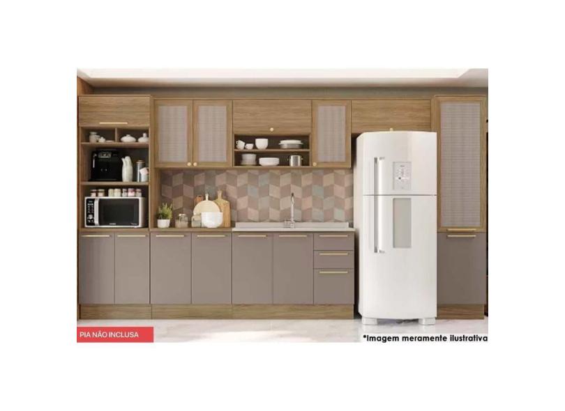 Cozinha Completa Botanic 8 Peças (3 Armários + 2 Balcões + 2 Paneleiros + 1 Complemento) M658 Nogueira/Fendi Fosco - Kappesberg