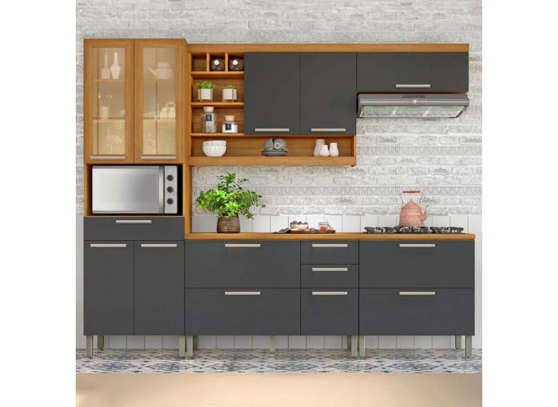 Cozinha Completa Burguesa Premium 10 Portas 5 Gavetas com Vidro 100% Mdf Freijó/Grafite - Nesher