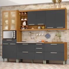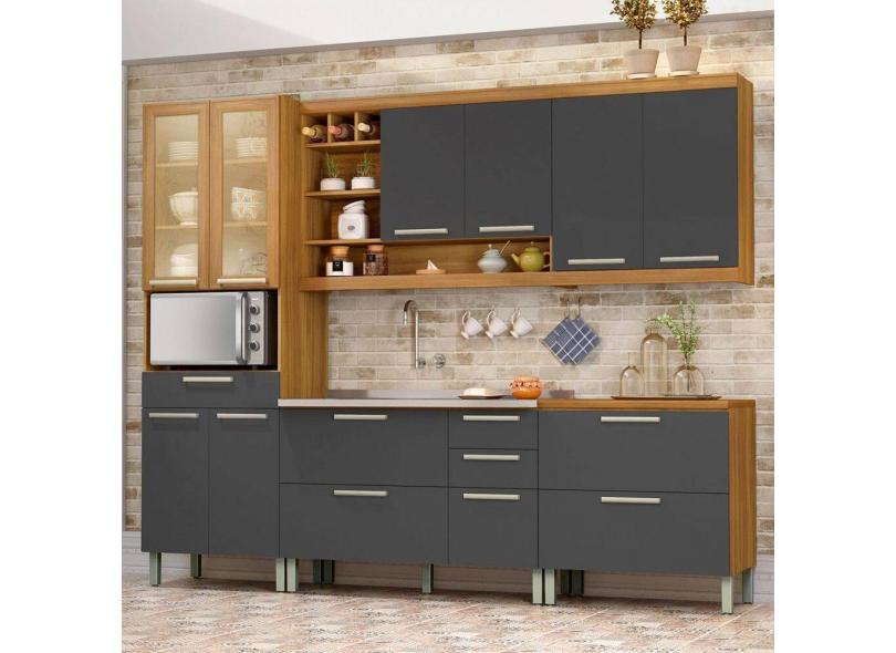 O menor preço encontrado no Brasil para Cozinha Completa Burguesa Premium 11 Portas 5 Gavetas com Vidro 100% Mdf Amadeirado Freijó/Grafite - Nesher atualmente é R$ 3.535,42.