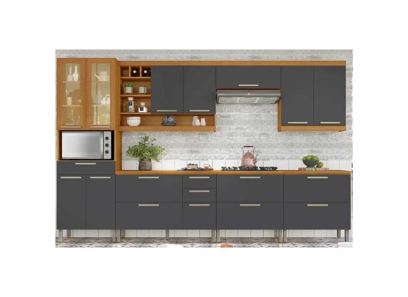 Cozinha Completa Burguesa Premium 7 Peças ( 3 Armários + 3 Balcões + 1 Paneleiro) C6P58 Freijo/Grafite - Nesher