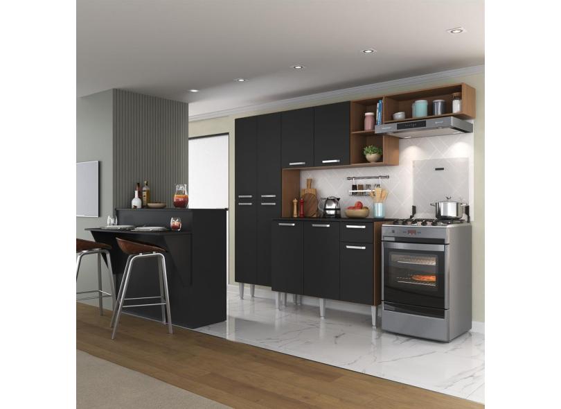 Cozinha Completa c/ Bancada Paris Multimóveis MP2044 Madeirada/Preta