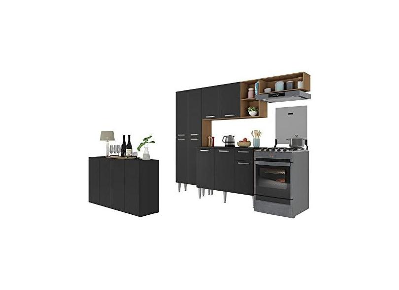 Cozinha Completa c/Buffet/aparador Paris Multimóveis Mp2043 Madeirada/preta