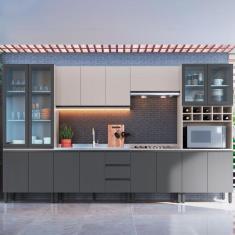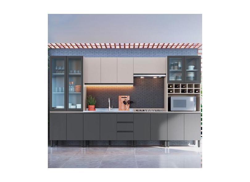 Cozinha Completa Cambará 16 Portas 3 Gavetas Fumê/Grafite - Quiditá Mó