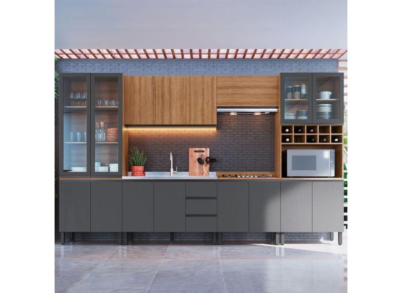 Cozinha Completa Cambará 16 Portas 3 Gavetas Montana/Grafite - Quiditá Móveis