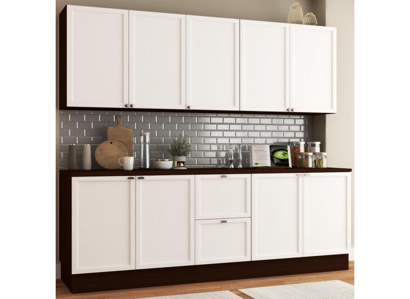 Cozinha Completa Campeche 9 Portas 2 Gavetas Nogueira/Branco - Panorama Móveis