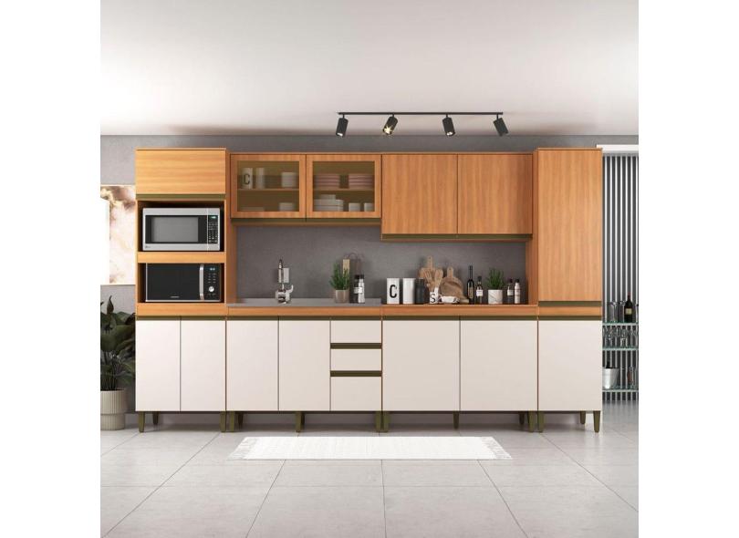 O menor preço encontrado no Brasil para Cozinha Completa Cecilia 13 Portas 3 Gavetas com Vidro Freijó/Off White - Jcarvalho atualmente é R$ 2.160,13.