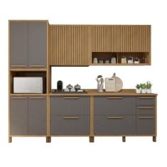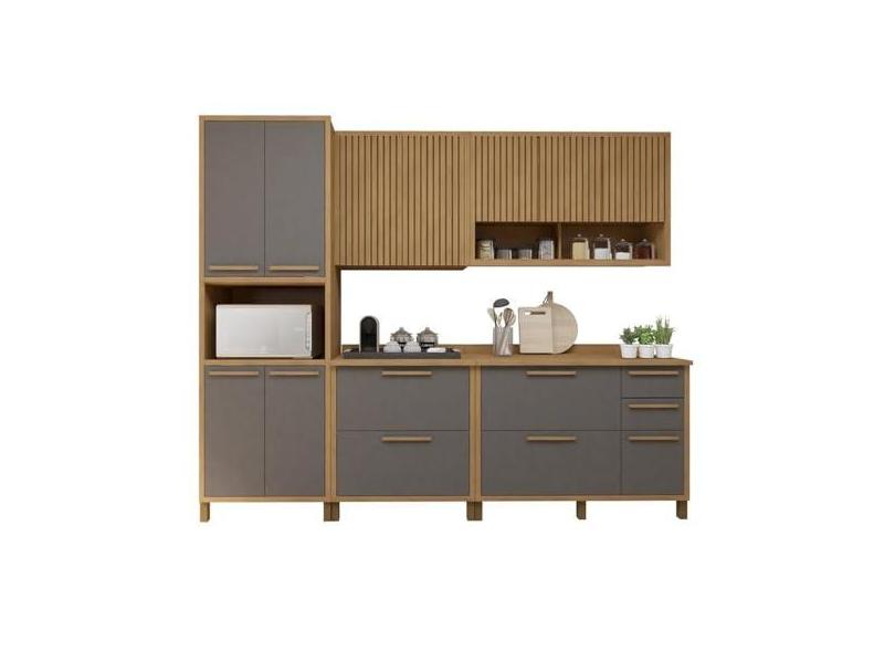 O menor preço encontrado no Brasil para Cozinha Completa com 2 Aéreos, 1 Paneleiro Porta de Vidro e 2 Balcões Cinamomo/Grafite atualmente é R$ 2.017,16.