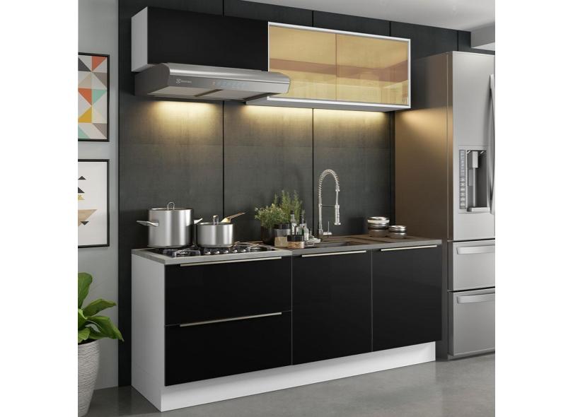 Cozinha Completa com Armário 5 Portas 2 Gavetas Branco Preto
