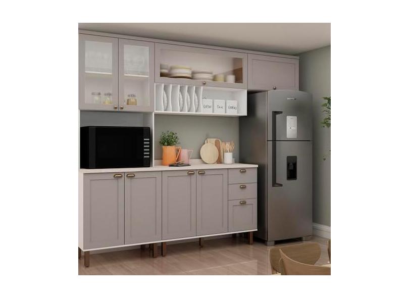 O menor preço encontrado no Brasil para Cozinha Completa com Cristaleira Forno sem Tampo 100% Mdf Iluminata Branco/Fendi atualmente é R$ 2.103,14.