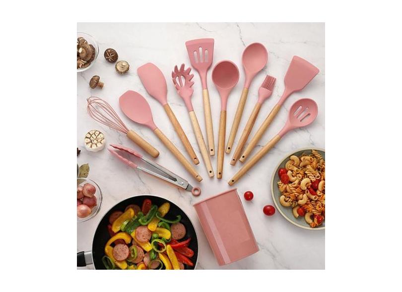 Cozinha Completa Com Esse Kit 12pç Para Panela Anti Aderente ROSA - RO
