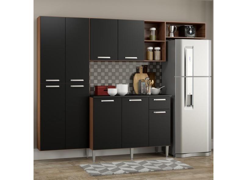 Cozinha Completa Compacta Balcão Madeirado Preto