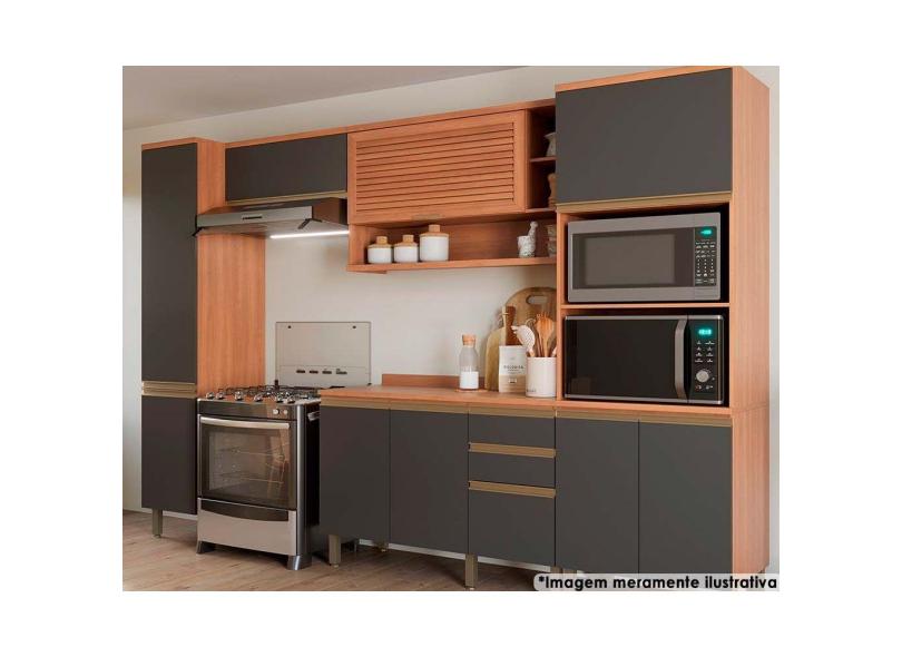 Cozinha Completa Completa Thela Macadâmia (2 Aéreos + 1 Balcão + 2 Paneleiros) 5 Peças Freijo/Grafite - Telasul