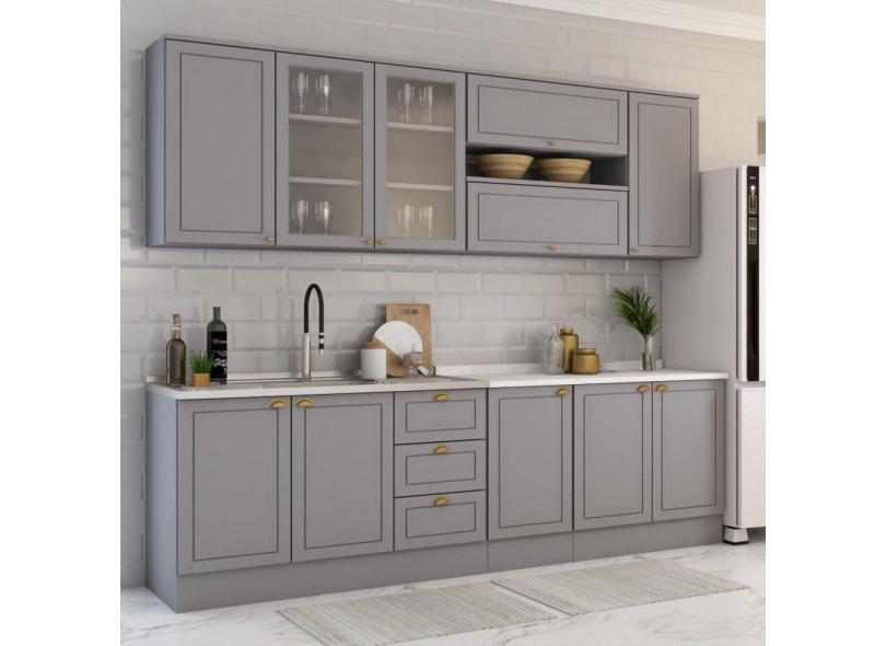 Cozinha Completa Dallas 11 Portas 3 Gavetas 100% Mdf Americana Cinza - Panorama Móveis