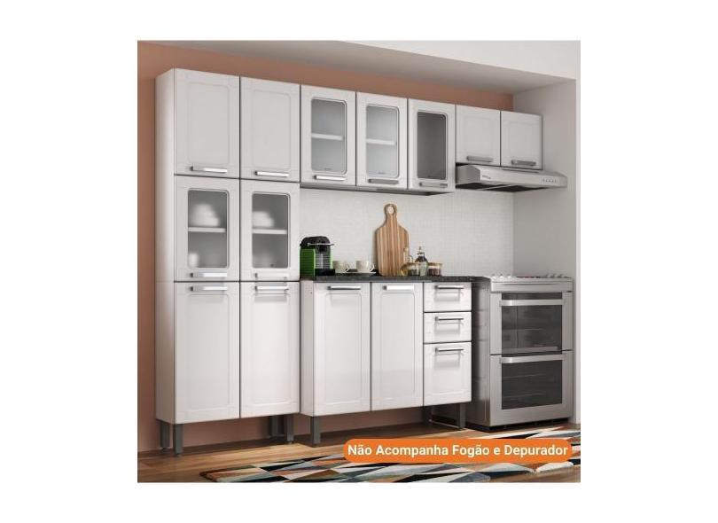 Cozinha completa de Aço Balcão 3 Portas, Paneleiro e 2 Armários Aéreo