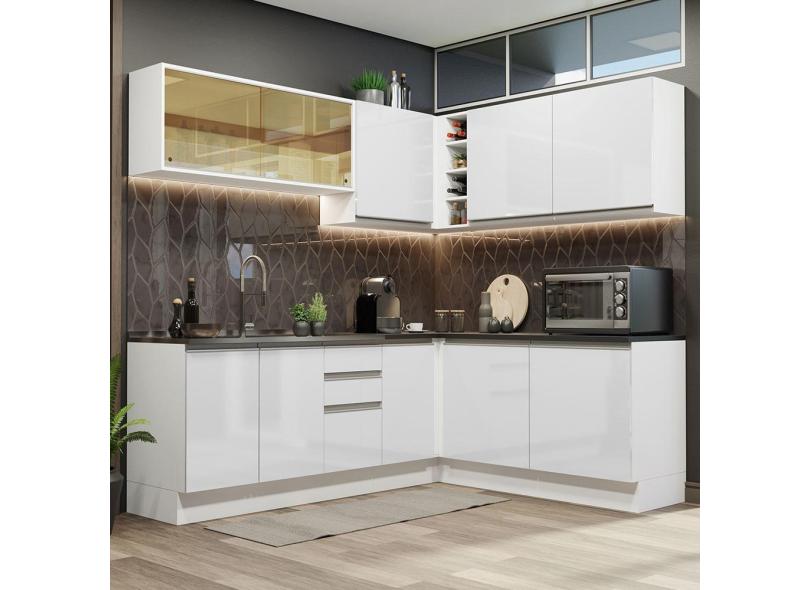 Cozinha Completa de Canto 100% MDF Madesa Acordes 389002 Armário e Balcão - Frentes Branco Brilho