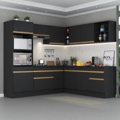 Cozinha Completa de Canto com Rodapé Veneza Multimóveis Mp2080 com Armário e Balcão Preta