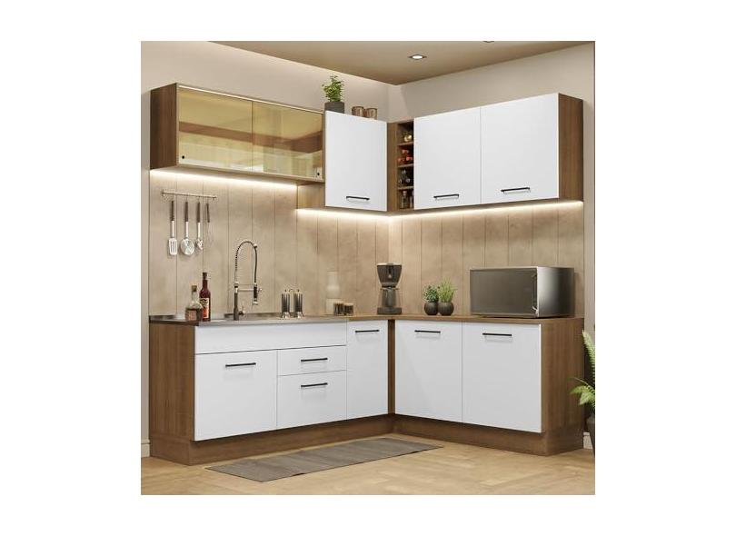 O menor preço encontrado no Brasil para Cozinha Completa de Canto Madesa Agata 389001 com Armário e Balcão (sem Tampo e Pia) - Rustic/branco atualmente é R$ 2.447,99.