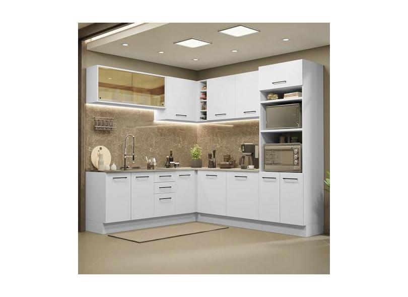 Cozinha Completa de Canto Madesa Agata 459001 com Armário e Balcão (sem Tampo e Pia) - Branco