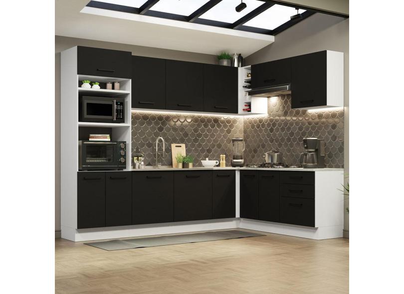 O menor preço encontrado no Brasil para Cozinha Completa de Canto Madesa Agata 479001 com Armário e Balcão (Sem Tampo e Pia) - Branco/Preto atualmente é R$ 3.443,99.