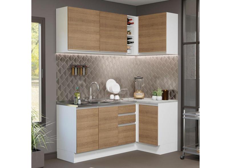 O menor preço encontrado no Brasil para Cozinha Completa de Canto Madesa Glamy 269001 com Armário e Balcão (Sem Tampo e Pia) - Branco/Rustic atualmente é R$ 1.700,90.