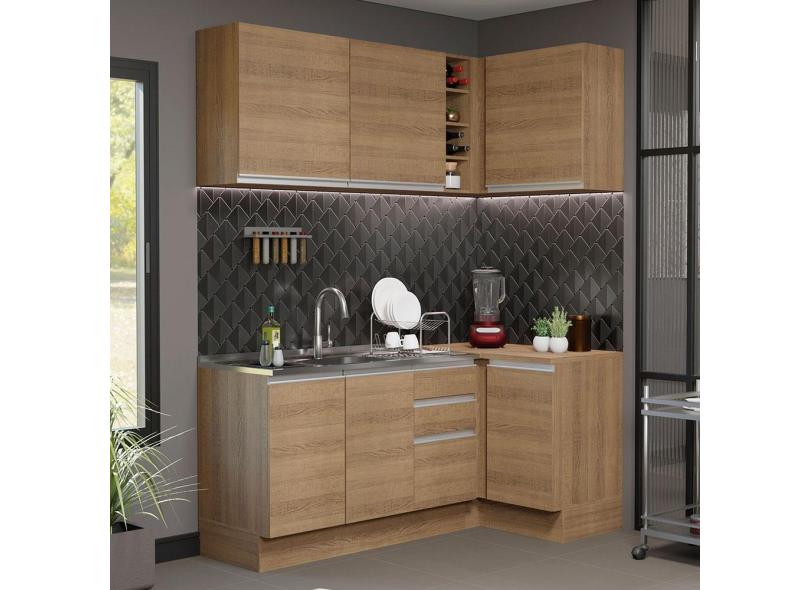 O menor preço encontrado no Brasil para Cozinha Completa de Canto Madesa Glamy 269001 com Armário e Balcão (Sem Tampo e Pia) - Rustic atualmente é R$ 1.700,90.