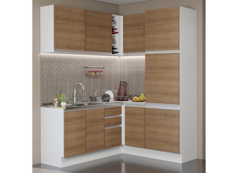 Cozinha Completa de Canto Madesa Glamy 329001 com Armário e Balcão (Sem Tampo e Pia) - Branco/Rustic