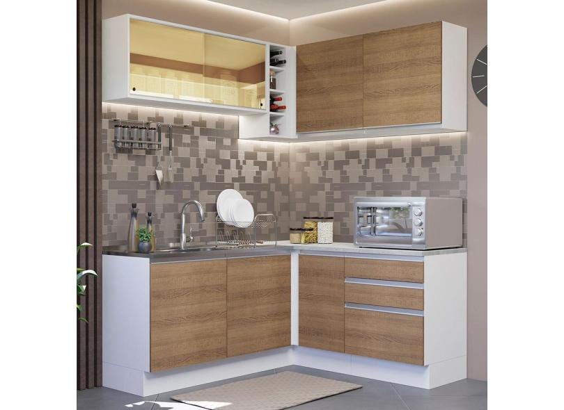 O menor preço encontrado no Brasil para Cozinha Completa de Canto Madesa Glamy 329002 com Armário e Balcão (Sem Tampo e Pia) - Branco/Rustic atualmente é R$ 2.209,99.