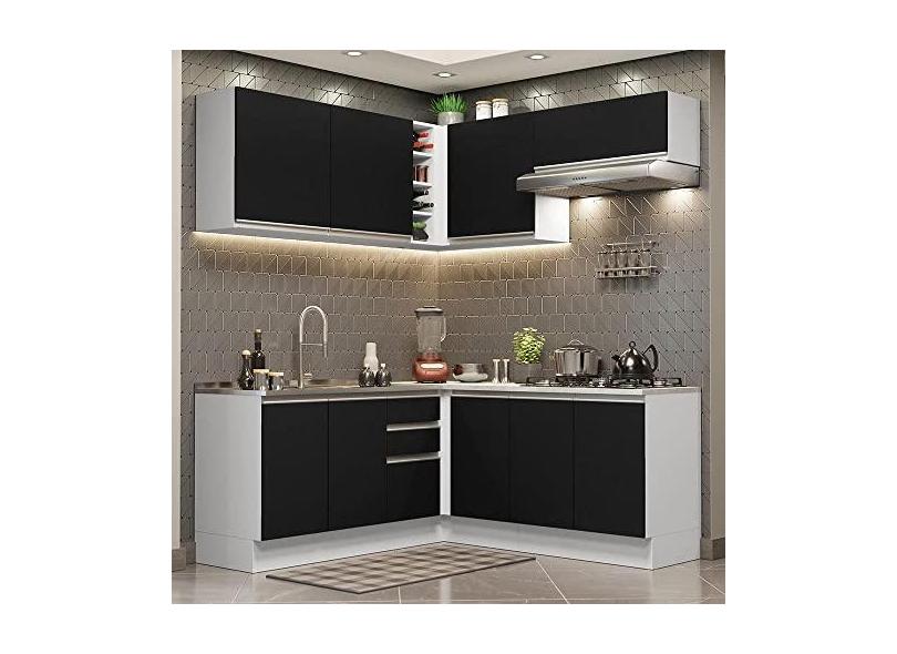 Cozinha Completa de Canto Madesa Glamy 349003 com Armário e Balcão (sem Tampo e Pia) - Branco/preto