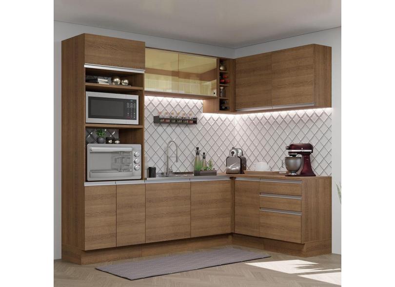 O menor preço encontrado no Brasil para Cozinha Completa de Canto Madesa Glamy 399002 com Armário e Balcão (Sem Tampo e Pia) - Rustic atualmente é R$ 2.672,90.