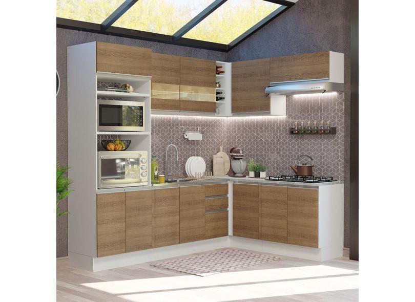 O menor preço encontrado no Brasil para Cozinha Completa de Canto Madesa Glamy 419001 com Armário e Balcão (Sem Tampo e Pia) - Branco/Rustic atualmente é R$ 2.974,99.