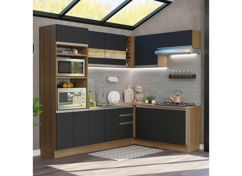 O menor preço encontrado no Brasil para Cozinha Completa de Canto Madesa Glamy 419001 com Armário e Balcão (Sem Tampo e Pia) - Rustic/Preto atualmente é R$ 2.834,90.