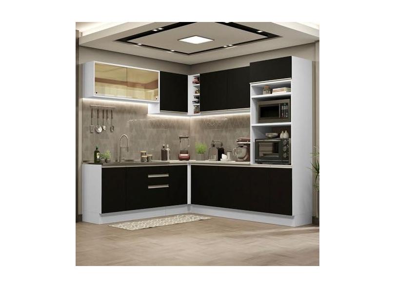 O menor preço encontrado no Brasil para Cozinha Completa de Canto Madesa Glamy 459001 com Armário e Balcão (sem Tampo e Pia) - Branco/preto atualmente é R$ 3.187,49.