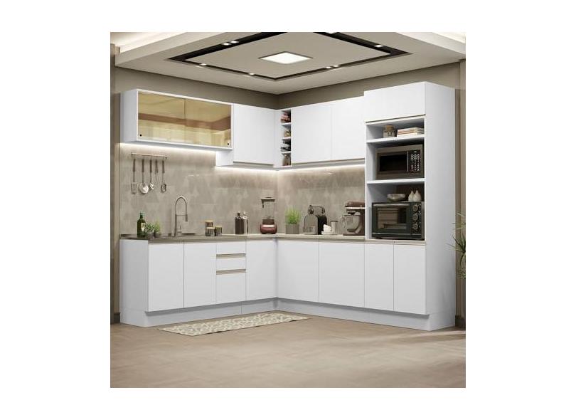 O menor preço encontrado no Brasil para Cozinha Completa de Canto Madesa Glamy 459001 com Armário e Balcão (sem Tampo e Pia) - Branco atualmente é R$ 3.187,49.