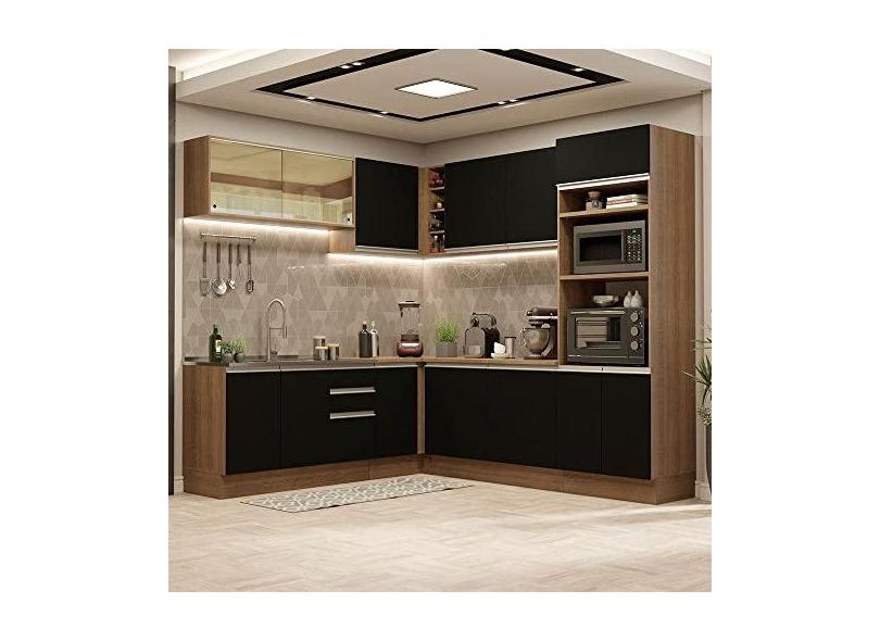 O menor preço encontrado no Brasil para Cozinha Completa de Canto Madesa Glamy 459001 com Armário e Balcão (sem Tampo e Pia) - Rustic/preto atualmente é R$ 3.187,49.