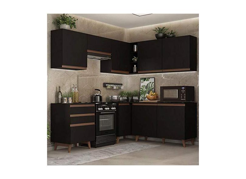 Cozinha Completa de Canto Madesa Reims 392001 com Armário e Balcão - Preto