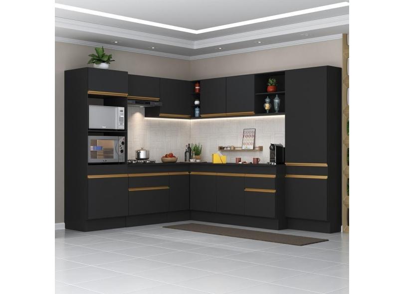 O menor preço encontrado no Brasil para Cozinha Completa De Canto Mp2082 Com Armário E Balcão Preta atualmente é R$ 2.754,39.