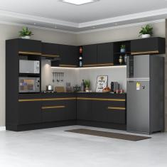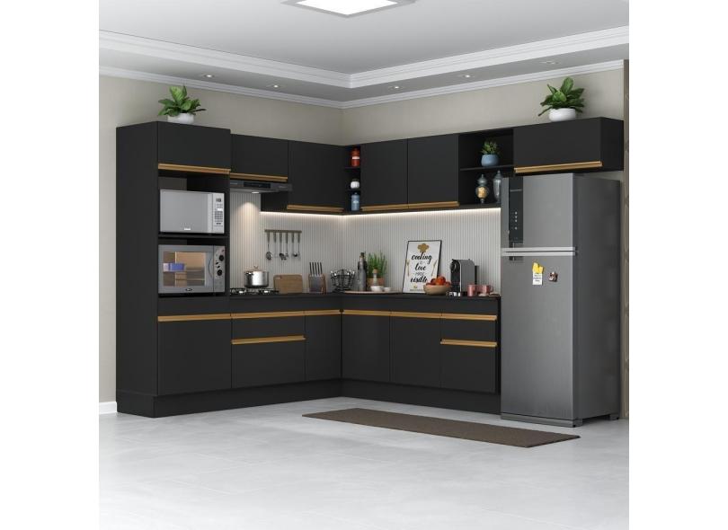 Cozinha Completa De Canto Mp2083 Com Armário E Balcão Preta
