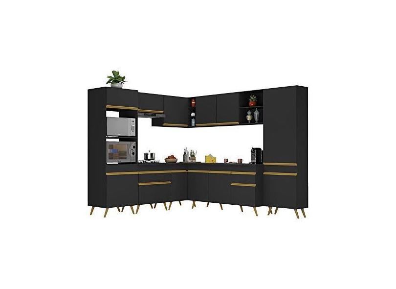 Cozinha Completa de Canto Veneza Gb Multimóveis Mp2047 com Armário e Balcão Preta
